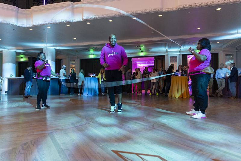 The evening entertainment drew crowds, as a local Double Dutch troupe brought their infectious energy. The performers showcased their skills and invited attendees to hop in and participate. A local youth dance team delivered electrifying pop-up performances throughout the space. The group blended hip hop, breakdancing, and freestyle movement in their dynamic performances showcasing young talent and creativity.